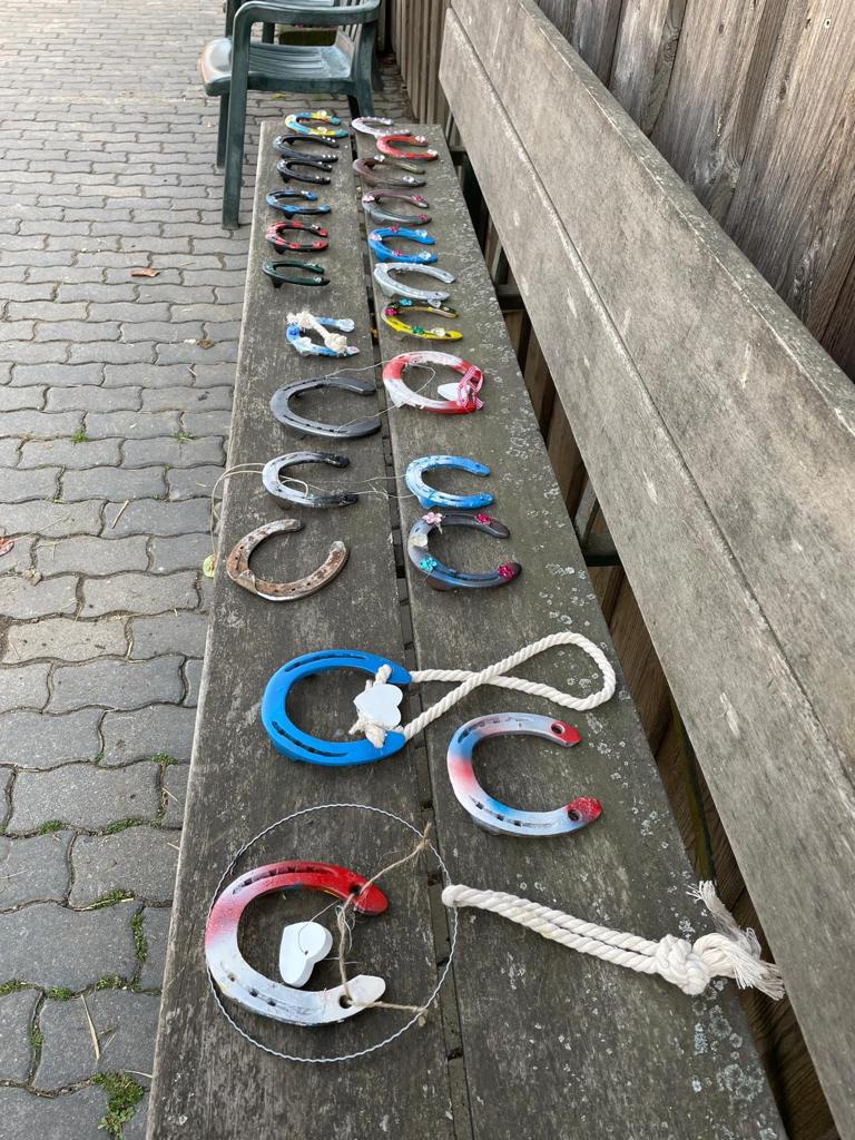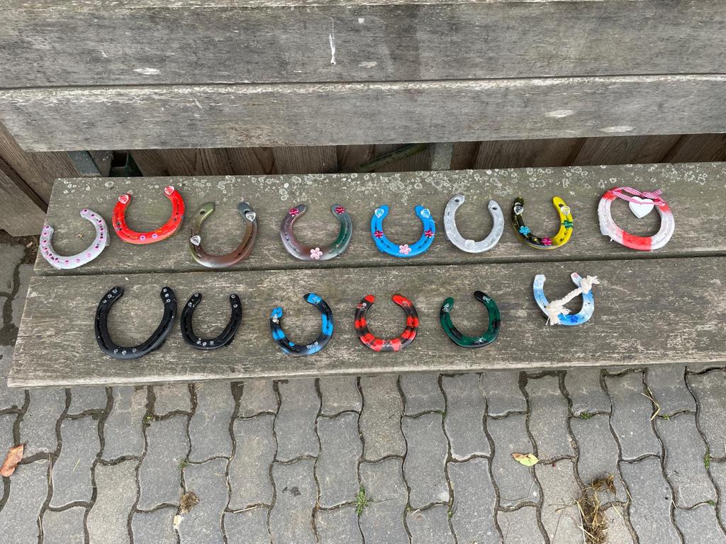 Ein weiteres Projekt ist das Gestalten von Hufeisen und tollen Objekten aus alten Eisen, die dann von unseren Jugendlichen auf unseren Reitsporttagen im August verkauft werden um die Jugendkasse fĂźr gemeinsame Aktivitäten aufzubessern. Schon jetzt sind einige schĂśne Kreationen fertig und wer jetzt schon eine erweben mĂśchte, kann sich gerne unter rfvnienburg@gmail.com bei uns melden. Vom Weinflaschenhalter bis hin zu toller Gartendeko hat die Kreativität unserer fleiĂigen Bastler keine Grenzen. Lasst euch Ăźberraschen.