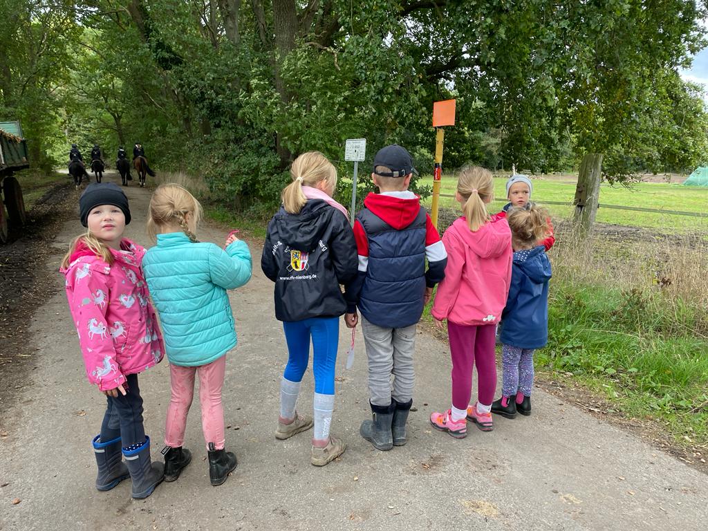 22 Kinder und Jugendliche nahmen teil. 15 ReiterInnen machten mit ihren Pferden und Ponys gruppenweise bei einer Schnitzeljagd den Wald unsicher. Sie hatten die Aufgabe gemeinsam jede Menge Buchstaben zu finden und daraus den gesuchten Satz zu bilden,was ihnen in fabelhafter Teamarbeit natürlich auch gelang. „Reite nie schneller als dein Schutzengel fliegen kann* war die Lösung.