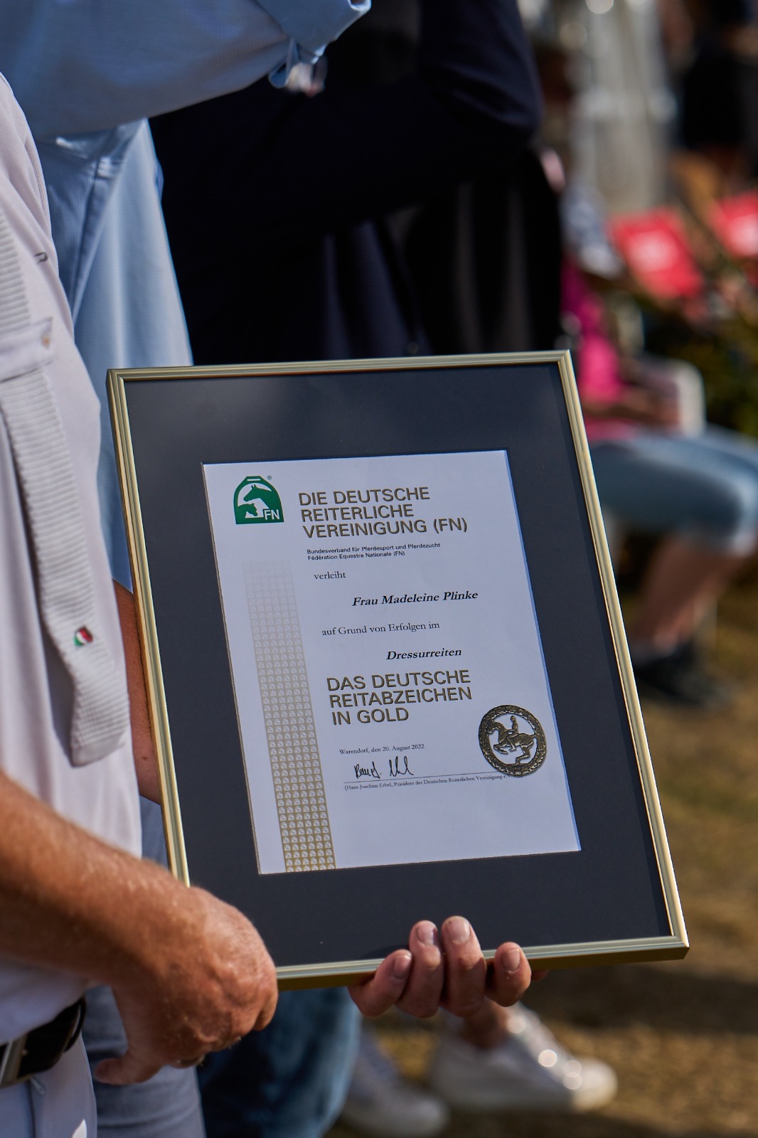 Und als sei das nicht alles schon genug, durften wir noch tolle Ehrungen bekannt geben. So wurde Helga Könemann für ihre 50 jährige Vereinszugehörigkeit geehrt, und das konnte natürlich nur auf unseren schönen Reitsporttagen ausgesprochen werden. Eine weitere tolle Ehrung war die Verleihung des goldenen Reitabzeichens an Madeleine Plinke, die sich innerhalb nur eines Jahres mit Unterstützung von Trainer Sascha Böhnke die erforderlichen Erfolge erritt. Mit Suri B und Royal Dream war sie erfolgreich von S* bis Kurz Grand Prix und mit ihrem selbst ausgebildeten 7-jährigen Daymax ist sie ebenfalls bereits in der schweren Klasse angekommen. Wir gratulieren dir herzlich, liebe Madeleine, und sind gespannt auf deinen weiteren Weg. Zelebriert wurde das alles auf unserer Zeltparty, auf der bis in die frühen Morgenstunden bei bester Stimmung getanzt und gefeiert wurde. Unser VIP Empfang am Sonntag war ebenfalls ein tolles Event, rund 60 Gäste durften wir begrüßen, die einen geselligen Tag bei uns verbrachten.