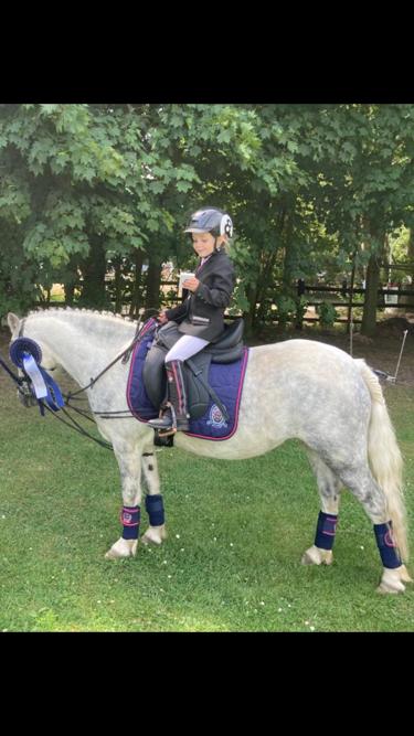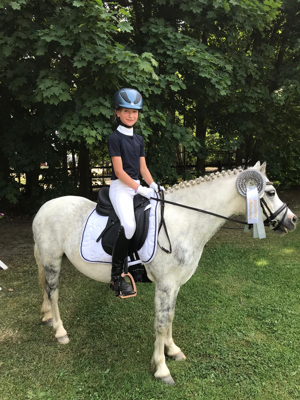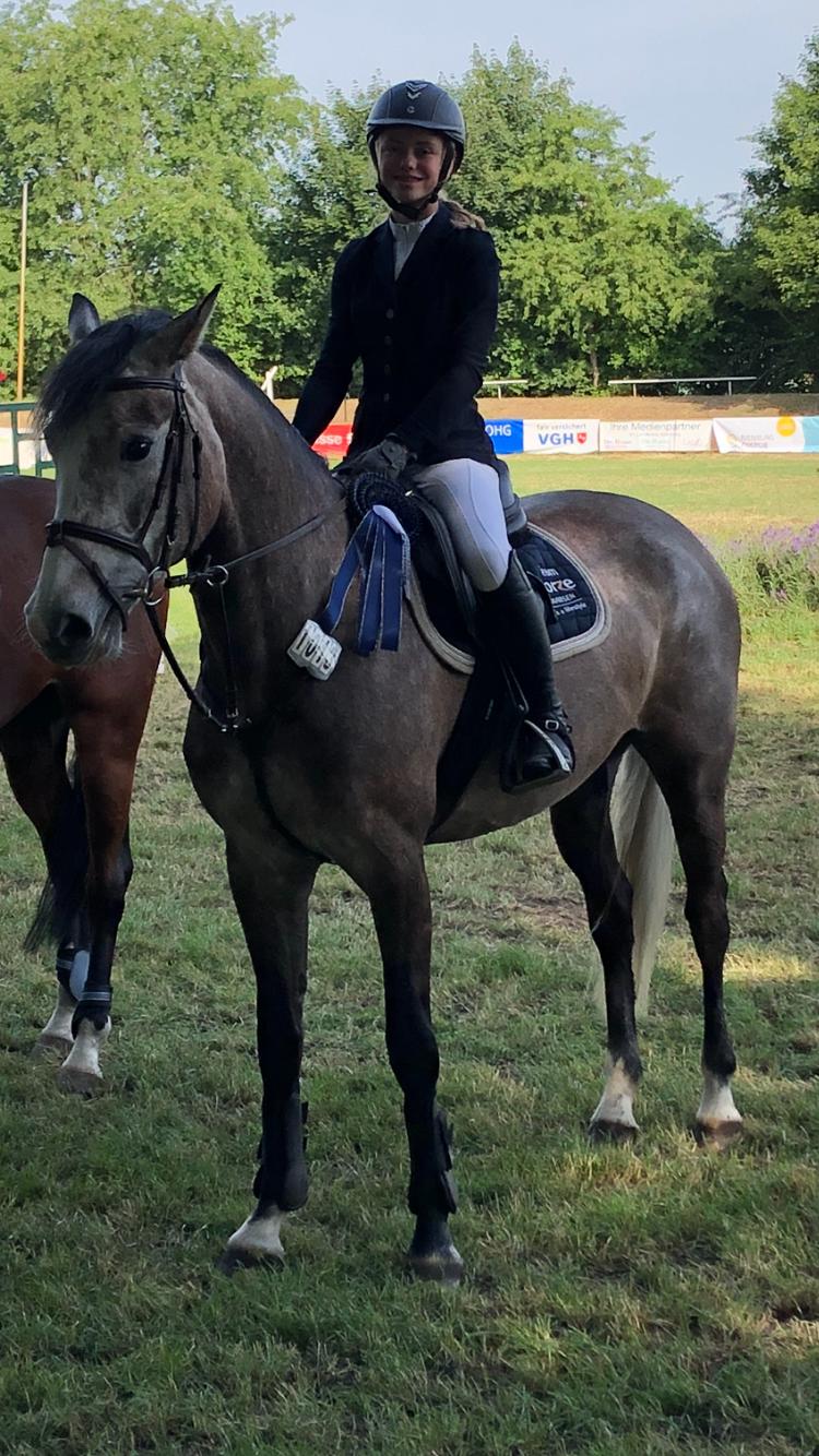 Theres Thomfohrde sicherte sich mit Shelley Platz 2 im Dressurreiter-Wettbewerb. Ihre kleine Schwester Elise zeigte einen tollen Ritt im Führzügelwettbewerb und freute sich über eine tolle Schleife, die perfekt zu Pony Shelleys Outfit passte.