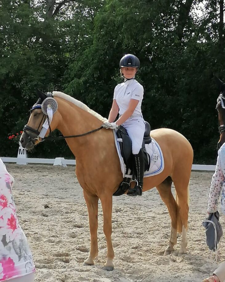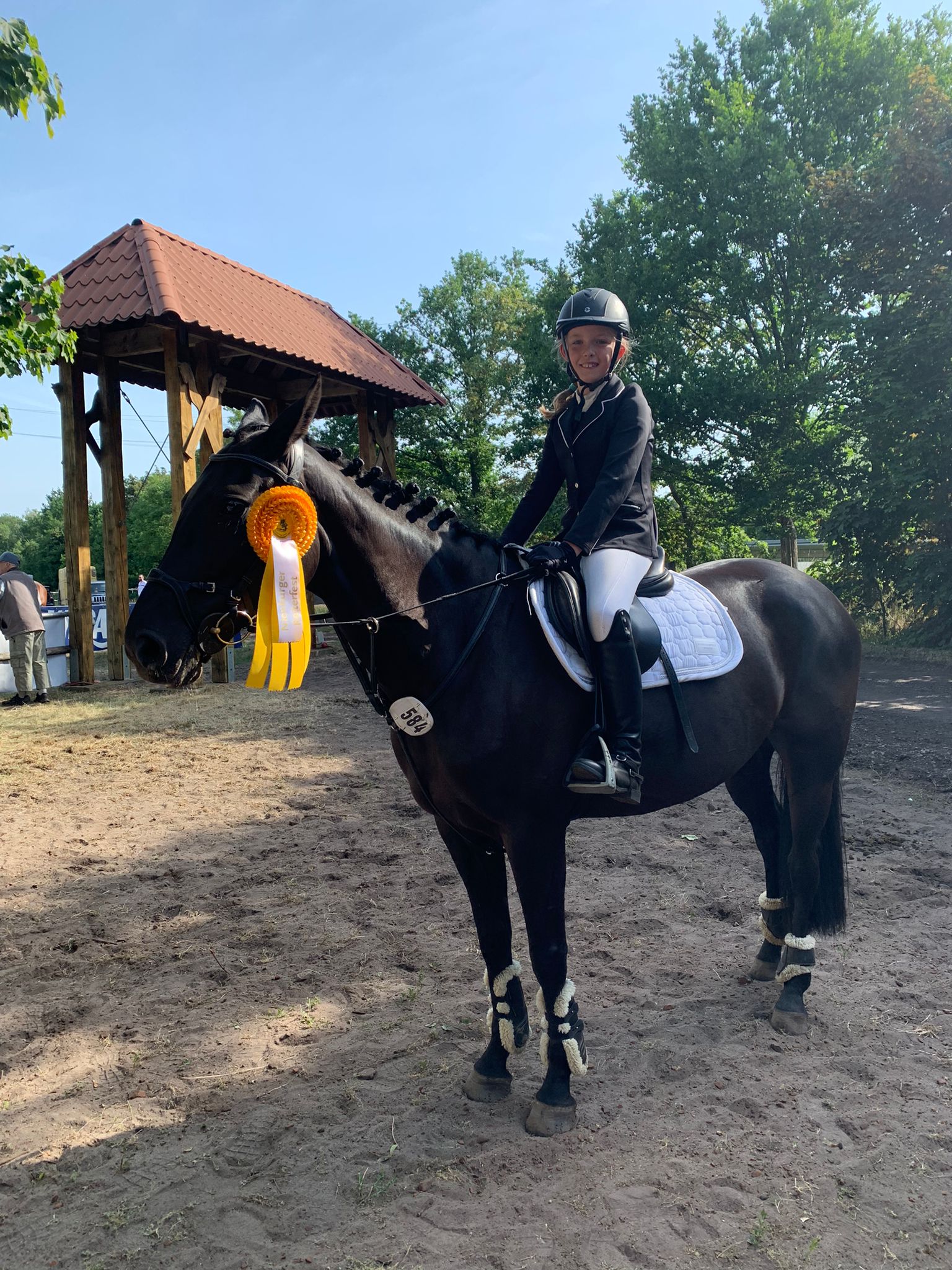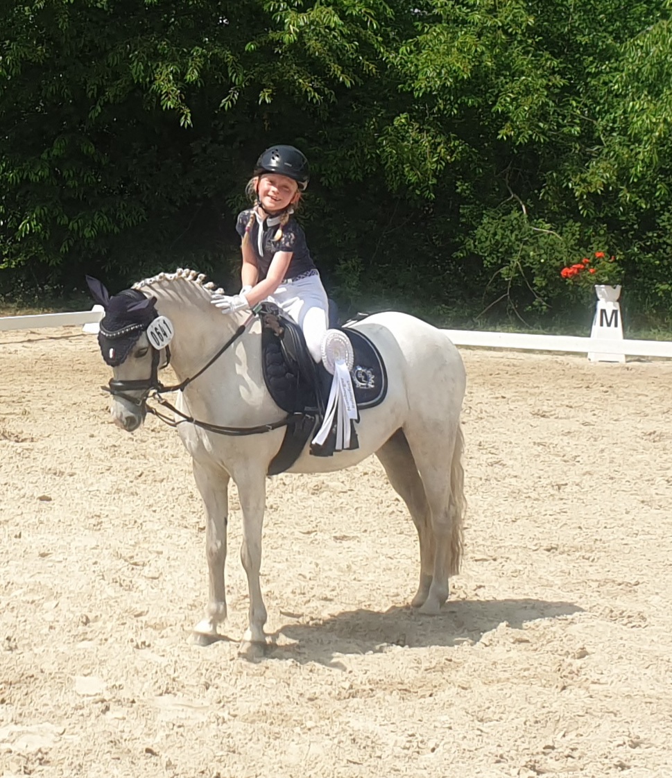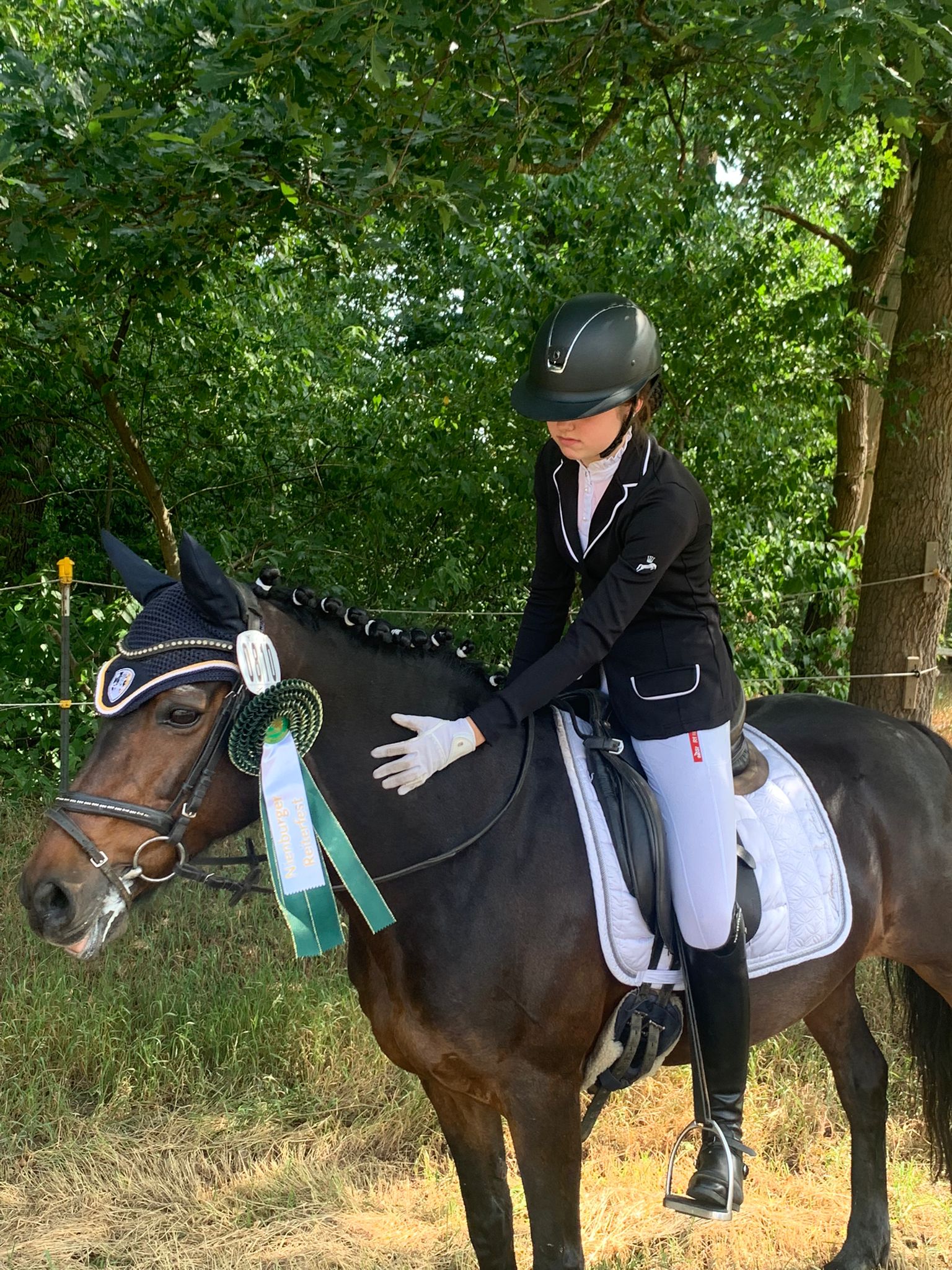 Unsere Dressurreiter waren nicht weniger erfolgreich. Pauline Mende und ihr Pony Emily belegten Platz 3 im Reiterwettbewerb Schritt-Trab und Hailey Rosenberger und Dana Lu belegten in ihrer allerersten Dressurreiter-A den 11. Platz. In dieser Prüfung startete auch Bianca Nitsch mit Dear Diary und belegte Rang 4, genau wie in der A**-Dressur. Tochter Anna-Olyvia belegte Platz 2 in der A-Dressur und startete ebenfalls mit Dear Diary.